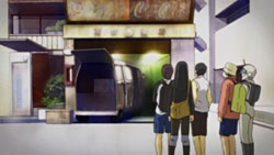 – The final day of the trip is spent hanging out in the city, where Konata drags everyone along for a trip to the anime store and the Kyoto Animation studios. They do the same pose as the one in the OP!