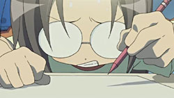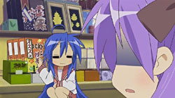 Kaioshin: OK man, we see the studio self-referencing itself. We’re all clever enough to understand the plug every week that we don’t need you to point it out to us. But when you just focusing on that one segment, meant to appeal to Haruhi fans by design, and as pointed out be jaalin and others, a proportionally miniscule aspect of each episode, you’ve got to ask yourself, what else are you missing? If you’re looking for flaws, this is the least heinous of offenses. If you don’t like how this episode fragment panders to hardcore otaku, then perhaps Lucky Star just isn’t you cup of tea.