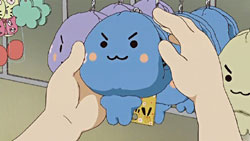 – Kagami finds a cute keychain at a gift shop and decides to buy it. Looks just like the character on those “qoo” drinks