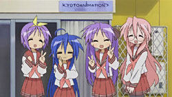 … You know, there’s another way of looking at the use of KyoAni’s studio in Lucky Star — it’s cheaper for them than if they had included anyone else (which would have required *gasp* negotiations). There’s probably a clause in some contract somewhere letting them do this…