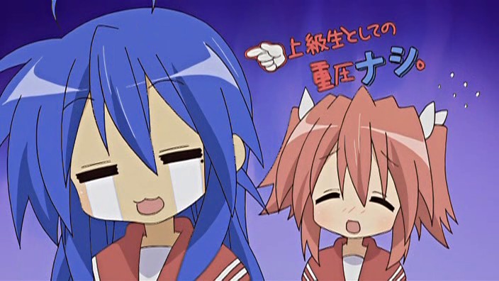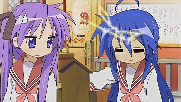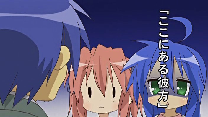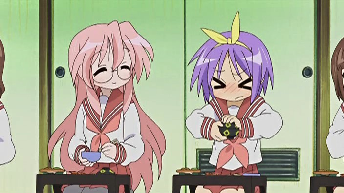 >> “in terms of actual clock time, kyoani references in lucky star comes in at less than 5%, with the other 95% pertaining to things lucky star exclusive. thing is, that small minority is the easiest to pick out, easiest to screencap, and therefore easiest to mistake as “all there is to lucky star.” a damn shame, really.”