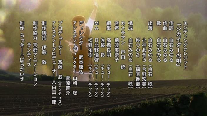 cuz you know, let’s just focus on the one kyoani reference in this episode and ignore the rest of the episode, which featured tsukasa getting gangbanged by a pack of deer, a great montage of the 4 girls exploring the sites, kagami’s epic rendezvous with a potential boyfriend, and shiraishi’s return to the studio after his excursion to the forest.