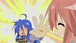 – What do you do with your spare hand when talking on the phone? Kagami makes a lot of hand gestures, Konata likes to clean her carpet… as for me… well, I don’t think it would make it to Lucky Star.