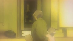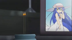 Even Soujiro is adult enough to know the weight of that statement. He proceeds to talk about Kanata and then busts out his new digital camera to talk some father-daughter pictures, but with a special guest – the spirit of Kanata drifts into the room to check up on her family. She’s relieved to see that nothing has changed – Soujiro is still the same guy, Konata still the carefree girl, and to see them as good friends puts a smile on her face.