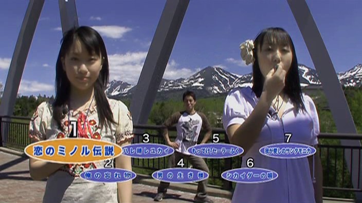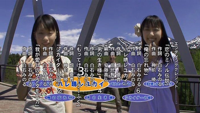 Shiraishi cycles through the EDs he’s sung, including one called 「我が愛しのサンタモニカ」 (Waga Itoshi no Santa Monica), as Akira and Tsukasa blow whistles. In other words, Shiraishi attempts to do his own best hits album…all at once.