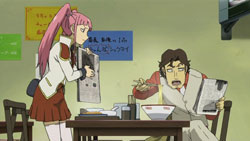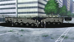 Inside the Gate, Amber is thankful for Yin bringing Hei here since the other Dolls had all died. She then apologizes because she doesn’t have much time left. Outside the Gate, Kouno and Saitou are trying to figure out what to do when they get a call from Ootsuka of the Astronomy Department wondering what’s going on. She’s scared because the Great Dark Spot is entering its final stage soon, and the Stargazer is laughing again. More fighting soon breaks out near Kouno and Saito as a pair of boy Contractors appear and start fighting the Pandora troops. After watching the boys get hit by a rocket, Kouno comments on how this is like a war, and Matsumoto suddenly drives up in the car with some body armor in the back. They then rush past the troops and towards the Pandora complex. In the control room, the men under Eric Nishijima are powering up the Ring, and he orders the use of all cameras inside the Gate to look for BK-201.