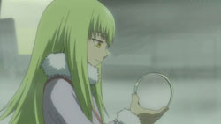 Amber feels that Bai changed, and she understands this because she was the same way. She also thinks that Yin and the other Dolls have begun to change little by little even though they don’t understand it yet. Amber knows that the contract that they’ve made is only the start of something that could happen in 100, 10000, or 100000 years. The reason she waited until now to tell him is because she didn’t think he’d believe her until now. In addition to that though, she thinks Hei would have left the Organization if she had told him, and he wouldn’t have survived until today if he had. Yin suddenly interrupts them to say that that is coming soon, and when Hei wonders what she’s talking about, Amber explains that it’s the thing that will completely erase Contractors and the Gate – the thing that they want to stop. Walking over to the nearly clock, Amber asks Hei if he wants to meet Bai. She then pulls out the meteor fragment and calls it mysterious because of how it returned to its round shape despite being broken earlier and distributed to all of the EPR members.