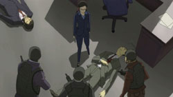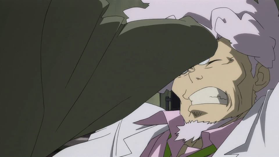 As he does so, Hourai explains that they were conducting an undercover investigation on Nishijima for violating United Nations law and committing insurgent crimes. Misaki thinks that this is just the leaders trying to avoid responsibility by sacrificing someone weak, and she accuses Hourai of doing everything to exterminate Contractors. She doesn’t have any direct proof, but she thinks that the truth will come out sooner or later, and the time will come when judgment is passed in history. Hourai, however, claims that she can’t prove his connection to the Organization, and he feels that she doesn’t know how big the Organization is yet. When Misaki points out that the disturbance this time puts the existence of Contractors into the open, Hourai says that he’d make everything disappear into the darkness before that happens. Misaki soon feels that she’s heard enough and reveals the tape recorder that was in her pocket, but Hourai then leaps forward and grabs her by the throat. He tells her that the path she’s chosen has only a more violent fight waiting, and he cites how humans and Contractors hate each other.