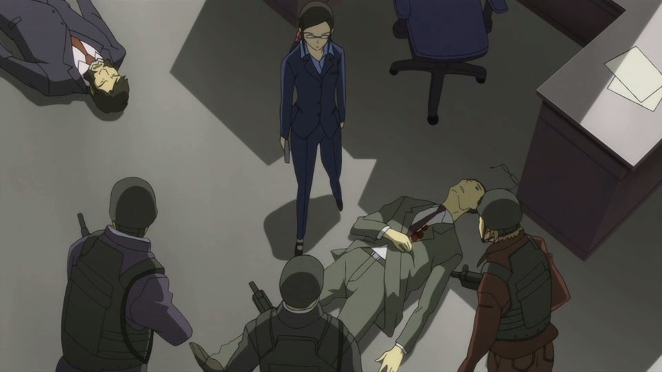 misaki a contractor? No way. I bet its that boss guy with the gloves. As for Mao’s death being confirmed, well that sux, i really wanted to know his back story.