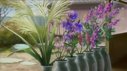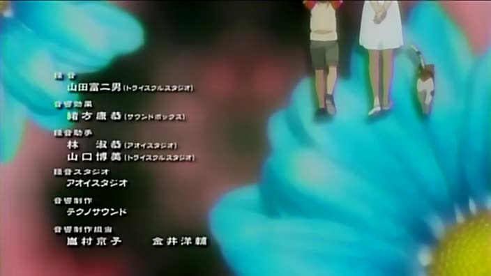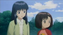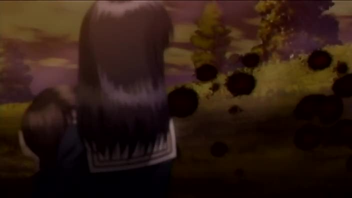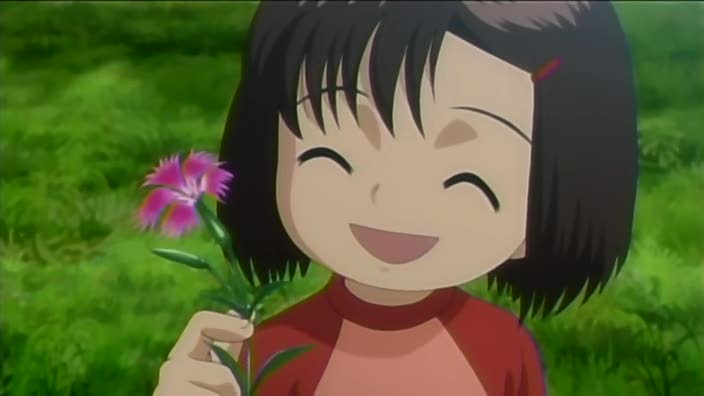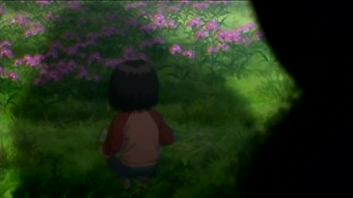 Shizuru and her grandparents are about to have supper but with Mizuki still wandering off in the wilderness, she decides to go look for her. She finally finds Mizuki amidst a flowerbed of carnations and brings her home, the dark blob-like spirit still roaming around in the vicinity.