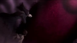 Shizuru panics and as she approaches the knocked-out Mizuki, she remembers her grandfather’s advice on how to remain unharmed by the mikoshi‘s presence. Instead of looking at the spirit from below, as one would to something superior, she glares down at the spirit as if it is subservient to her. This action proves effective, and the mikoshi shrinks in size and scatters away.