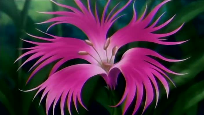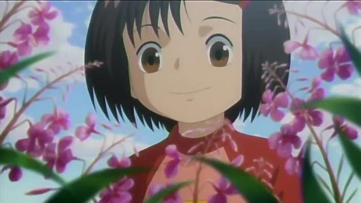 Energetic and cheerful, Mizuki (voiced by Mizuki Nana) wanders around the vast countryside fields in search for nadesico(as in carnations, not the battleship!). She stops by a gathering of bright, pink wildflowers, thinking they are carnations until she checks her trusty field guide, which states otherwise. Rats. Right behind her back, a group of dark figures form and merge menacingly, but quickly disappear as Mizuki turns around.