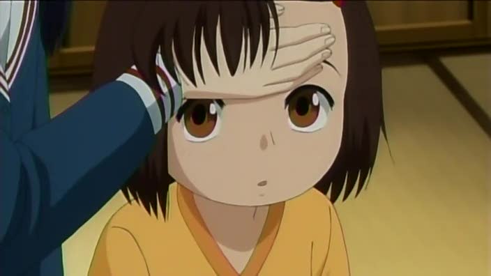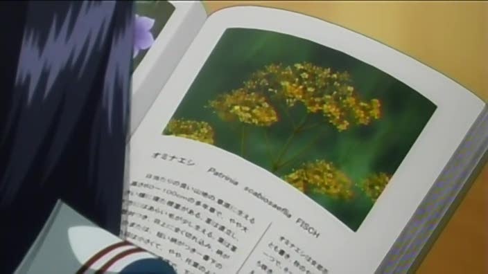 With six flowers collected, Mizuki is keen on gathering the last flower for nanakusa, the rich yellow 女郎花 (ominaeshi – Patrinia scabiosifolia). Wanting to help, Shizuru follows along and the two search for the ominaeshi in different areas of the plain – that is, until Shizuru’s sixth sense-of-sorts kicks in. Worried that something may have happened to Mizuki she runs to her side, only to find Mizuki knocked unconscious from staring into the spirit that kept following the young imouto for so many days.