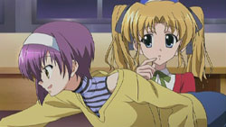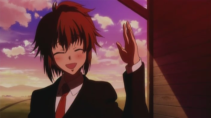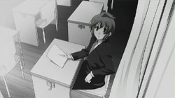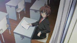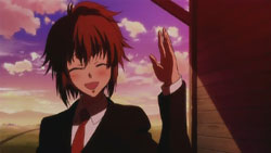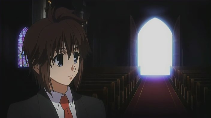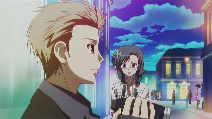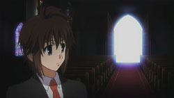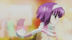 When snow starts falling around them, the girl dances around happily and explains that she likes how she can be with someone for a White Christmas because she doesn’t want to be by herself on such a day. Since she hasn’t introduced herself yet, the girl tells Hiro that her name is Miyamura Miyako, and she also finds his name strange. She then tells him that there’s no one home tonight, and she follows this up by accusing him of thinking perverted things. Unfortunately, her key was in the stolen bag, and because she doesn’t want to be outside by herself tonight, she has Hiro accompany her. As for Renji, he finds himself at school on a different day after getting a form to fill out his future aspirations. He wants to be the prince who fights to protect the princess from misfortune, but he realizes that he’s too old to be writing down that kind of dream. Unsure of what to do, Renji goes to see a man named Himura Yuu at the church to get an adult opinion, however Yuu claims to be neither a priest nor a counselor. The reason he’s always hanging around here is because he’s waiting for someone.