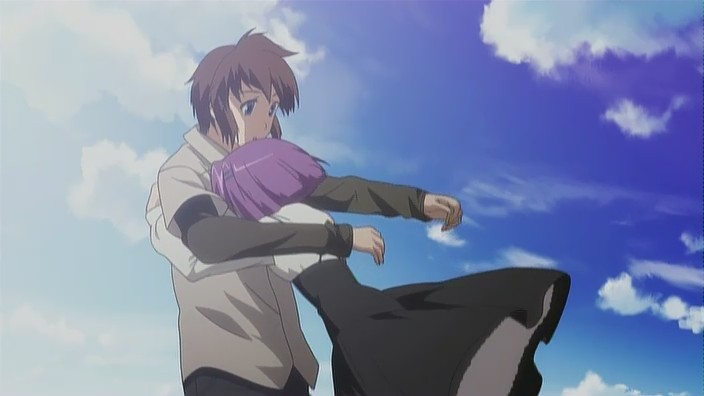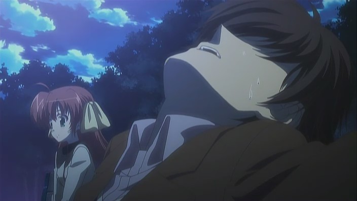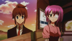 Just watched the raw last night to make notes for our group. I didn’t realize this until someone mentioned it, but Chihiro looks like Nodoka from Negima!?, but with an eyepatch. I do like the storytelling style from what I’ve seen of this first episode as it gives you a sense of parallel stories running all at the same time. It does seem to switch around from each set of characters as you get a piece of their story, but also at the same time, they each connect to each other in a certain way. I’ve only gone through the first scenario with Miyako and Hiro in the PC game so far, and it did play out the same way for their first meeting in this episode.