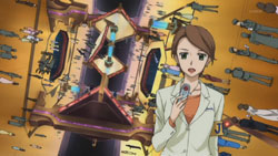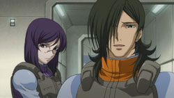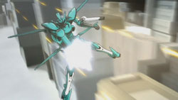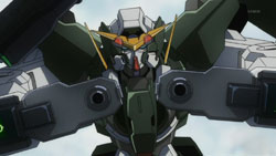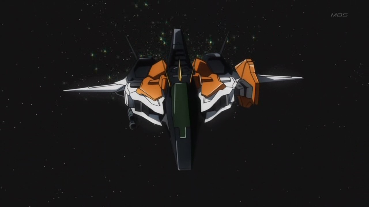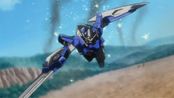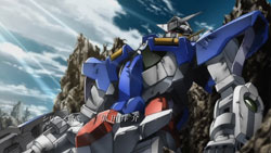 Up in space, on the Celestial Being transport ship Ptolemaios, the crew is monitoring the progress of the operation, with one of them wondering if Setsuna did things properly. The ship’s tactical forecaster Sumeragi Ri Noriega has already started drinking alcohol in celebration of the beginning of Celestial Being’s introduction to the world. While this is going on, the Gundam Kyrios with its pilot Allelujah Haptism moves to the ship’s catapult deck, and it takes off in its flight mode. Meanwhile, on the station at the top of the Human Reform League’s orbital elevator, there is a party being held in commemoration of the 10th anniversary of the its opening. In attendance is Wang Liu Mei, a beautiful girl who comments to her attendant that Celestial Being is finally moving after learning from him that things have begun. Back on Earth, the Exia has come under attack by numerous AEU fighter aircraft, and help arrives in the form of sniper fire from the Gundam Dynames and its pilot Lockon Stratos on the ground. The two Gundams destroy all the aircraft, completing the operation’s second phase. At the AEU base, Graham is explaining to his companion that this is both containment for and a warning to the AEU for having military power that’s more than it is allowed in the treaty. Graham doesn’t know why the Gundam or its pilot is doing this, but he reiterates that he doesn’t think the AEU will stay silent.