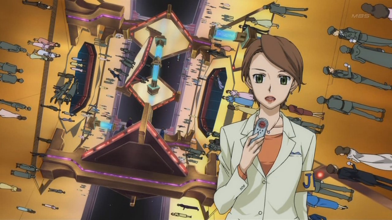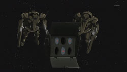 During all this, terrorists in their own mobile suits have started approaching the Human Reform League’s geostationary satellite orbit station. The station’s defenses are scrambled, and an officer named Sergei Smirnov thinks that this situation is due to the AEU selling weapons randomly to third countries. The defense forces manage to fire on the terrorists, but they don’t land any hits before the terrorists unleash a trio of missiles aimed at the structure where the party is taking place. Fortunately for all those inside, the Gundam Kyrios shoots the missiles down and flies in to save the day. Allelujah destroys two of the terrorist mobile suits, but he can’t make it in time to the third one that appears to be making a suicide run, so he calls in Tieria Erde on the Gundam Virtue. One heavy cannon shot later, the terrorist mobile suit is destroyed, and the third phase is complete. It is some time later that day that the television station JNN airs a report about the incident with some footage taken by a camera crew at the party. They also show a video message that they got from the group that claims it stopped the terrorists. In it, an old man introduces his group as Celestial Being, a private military organization that possesses Gundams.