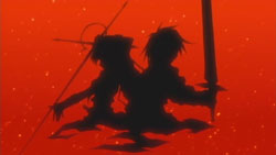 looks like slayers Lina and Gourry, doing the shadow theatre!