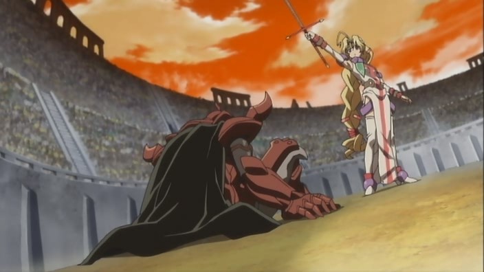 That being said, the production quality on this was pretty good, and the Hyaweh ended up being a cooler and stronger than he looked. That might have a lot to do with how voice actor Kakihara Tetsuya used his mature Simon voice (from Gurren Lagann) for the part. The fact that he talked about believing in his comrades’ power reminded me of GL even more. Overall, I think this first episode came off more like a prologue than a beginning of a series, especially since the preview indicates that we’ll be going back to Hyaweh and Priecia’s knight academy days next week. I’m currently leaning towards not wanting to blog this show, but we’ll see how the second episode turns out.