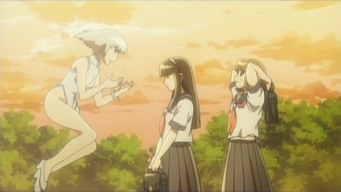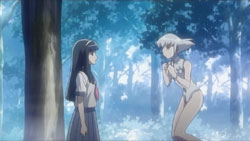 quex: I know what he means. However, a.) yuri doesn’t imply ecchi even though some think it does (which is a minor nitpick) and b.) inappropiate (eg., when it doesn’t fit the relationship/story (yet)) ecchi is one easy way to ruin a good story. Nothing against appropiate ecchi (Kannazuki no Miko’s scene worked well… because it made sense both from the character aspect and from the story aspect. As did the scenes in Canvas 2 and School Days.) – and if they consumate their relationship at a later point, great. But their relationship isn’t anywhere near this atm, and rushing that development because some people, who clearly have mistaken the series for something else, want to see TEH ACTION would be a great disservice to it. The need of the story and the flow of teh relationship should dictate that, not aforementioned “we need to have a sex scene here”…