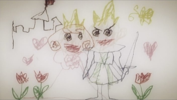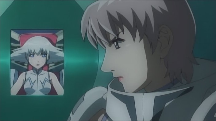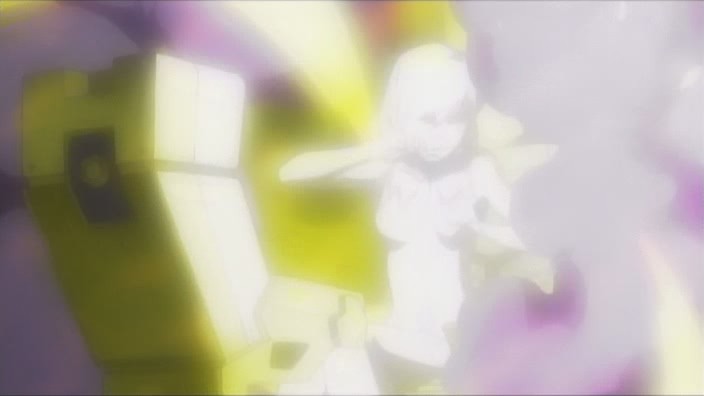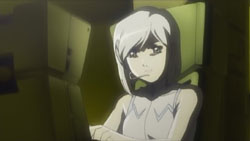 Michiko is still having trouble coming up with her script, yet when Mari asks her about it, she claims that it’s almost done. The more she thinks about it, the more pressure she builds on herself, and she continues to get nothing accomplished. She distracts herself by helping with the gardening on the school grounds, and when Hagino and Mari just so happen to pass by while she’s working, she overhears them wondering what her play will be like. It doesn’t help that Hagino mentions that there was television coverage last year, nor does it help that Yuuko heard from Mari that the script was almost done and brings Michiko some cake as refreshments. Hagino meanwhile has made the decision to release Azanael – despite Tsubael’s objects – because she feels there’s no reason to keep her locked up. They don’t let Azanael back onto her own aircraft in order to prevent her from getting away, but they do let her move around the ship. The first place Azanael heads to is Onomil’s room, and it is there that she watches a hologram of herself and Onomil from the past.