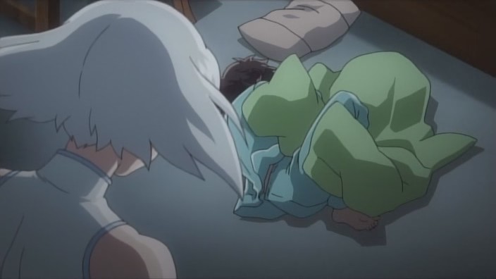 Well, I liked how the episode somewhat started and ended with Tsubael’s observations about the humans and how she starts to understand Hagino’s feelings. That wrapped the episode up nicely. However, I didn’t find myself very interested in Michiko’s character or this whole script plot, even though Michiko’s reimagining of Mari, Hagino, and Tsubael was kind of amusing just because that style was rather unexpected. With Michiko, we get to see someone who’s under a lot of pressure, but I just don’t see as much potential in her story without a deep relationship with another character (à la Mari and Hagino or Azanael and Onomil) to go with it. That’s why I’d much rather just see more of Hagino and Mari getting closer to each other, and from the preview, that’s what next episode will feature.