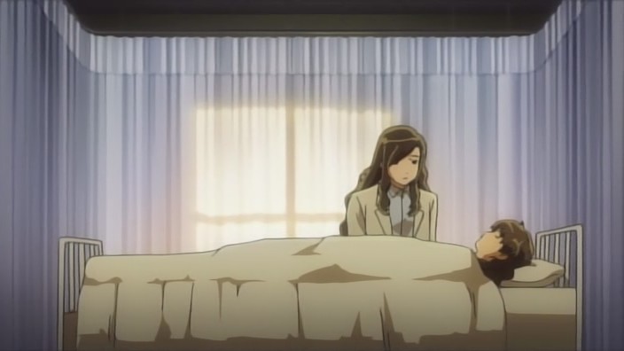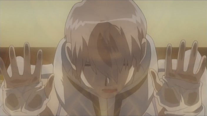 That afternoon, Hagino and Mari discover that Michiko is gone and realize that she hasn’t actually written anything yet. Nearby is a note from Michiko apologizing to everyone and asking them not to look for her. Despite this, Mari checks Michiko’s parents store to see if she’s there, but when Michiko hears Mari coming, she runs away again. Onboard the Blue, Azanael visits the engine room and finds the emergency use control area in shambles. Tsubael claims that it was something that couldn’t be helped, and when Azanael gets angry over why Hagino and Tsubael are still alive despite everyone else being dead, Tsubael has the Blue play back the recording of what happened back then. Ignoring orders to get out of the engine room because the engines were going out of control, Onomil had used the emergency controls because she felt she had to protect Hagino’s ship. She had figured out the problem, but the nearby explosions had then consumed her. Knowing all this doesn’t make Azanael feel much better, and she asks to be left alone.