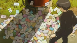 At his apartment, Sana thinks back to his past with Nanaka and how they secretly shared a mailbox that wasn’t used anymore. They had used it to send each other messages, and each of them had a key to the mailbox. Sana tries looking for that key now, though he gets interrupted when Aoi comes into his apartment and panics after seeing all the erotic magazines and manga strewn everywhere. In trying to go after her to clear up the misunderstanding, Sana kicks open a canister that contains the key. When he later takes the key to the mailbox and opens it, he is shocked to find it full of letters addressed to him. Even more disturbing is the fact that there is one particular letter with “Help” written in red ink all over it. Because of this, Sana tracks down Shuusuke the next day and demands to know what happened while he was gone. Shuusuke at first tries to dance around the subject, but he eventually reveals that there was a fire that claimed Nanaka’s parents’ lives three years ago.