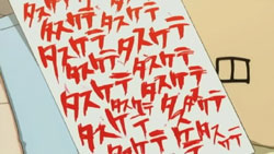 On the letter it says ‘ta su ke te’ in katakana. It means ‘help me’