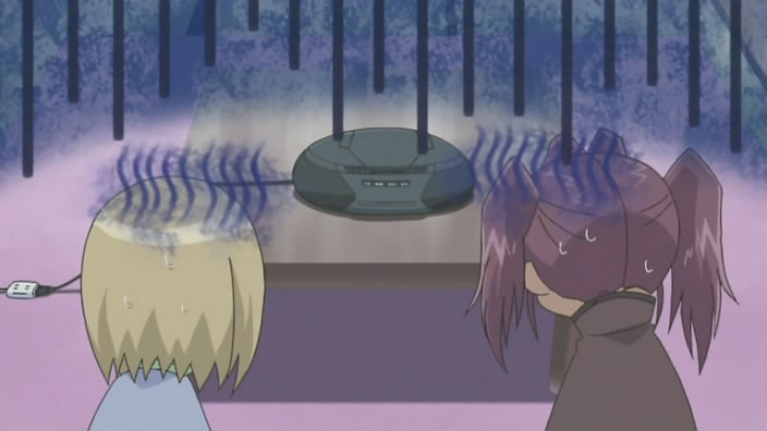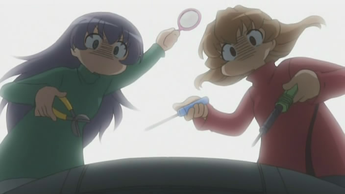 The overly dynamic senpai duo fix Hazuki’s stereo while demonstrating the art of persuasion, deception, and some crazy engineering skills; Sora hangs out with her technological nemesis, the girl with the camera. Some awesome piano music throughout this one.