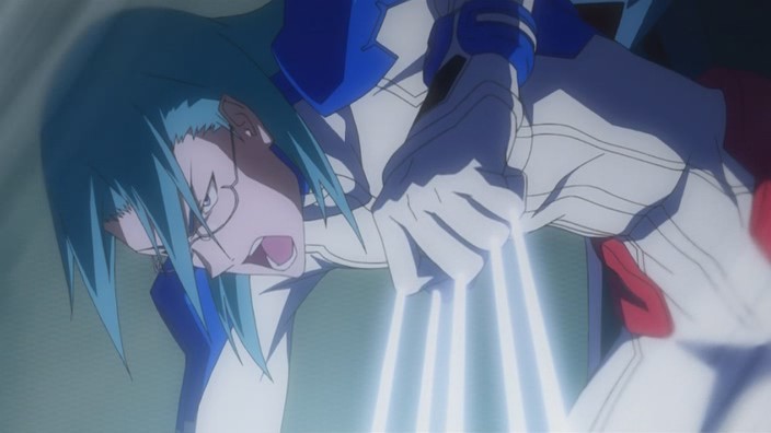 Nanami secretly heads to Toa’s holding cell and asks what Toa intends to do once she’s free. Toa admits that her mission is to bring back the Dragons born on Earth, but since Mother was unable to communicate with her, a new dragon was sent. In other words, Toa knows that Mother has abandoned the Earth-born dragons. Nanami doesn’t care about all this though since she just wants to know if Toa will save Earth or not. Toa’s answer is that she doesn’t know, but she specifically says that she wants to protect the person she loves. Hearing this leads Nanami to decide to free Toa, but moments after she does this, she get shot in the back by Garnet. This in turn causes Toa to cry out, and, back on Earth, Jin is suddenly able to hear her song. He figures out that it’s coming from Mars, but just as quickly as the singing started up, it ends again because Garnet reactivates the field confining Toa. Still, now that they know Toa is on Mars, Akira wants Jin to leave things on Earth to the Lindworm Unit so that he can go get Toa. Jin and Gio thus take off towards space while the other dragons try to hold Ostolm back, but Ostolm is able to break free.