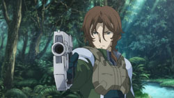 Pointing his gun at Setsuna, Lockon admits that he really wants to shoot Setsuna right now to avenge his family. He ends up firing, however Setsuna doesn’t even flinch as the bullet sails past his head. When Setsuna finally speaks up, he talks of how he was made to believe in God, but he now feels that there is no God in this world. He blames the KPSA’s leader Ali Al Sarshes and tells the others how he had found out that Ali Al Sarshes had been part of the PMC in Moralia. Back during that incident, Setsuna had wanted to confirm that Ali Al Sarshes was alive and to question where Ali Al Sarshes’ God was. Still pointing his gun at Setsuna, Lockon then changes the subject to what Setsuna wants to do with the Exia. When Setsuna replies that he wants to eradicate war, Lockon comments on how this would be impossible if he shot Setsuna. It turns out that Setsuna doesn’t care if that happens and would want Lockon to change the world in his place. Setsuna will fight if he’s alive, but it won’t be as Soran Ibrahim – it’ll be as the Gundam Meister Setsuna F. Seiei. After hearing Setsuna declare himself Gundam again, Lockon puts down his gun and calls Setsuna a Gundam fool, but Setsuna actually thanks him for saying that. Setsuna thinks of it as the highest praise, and this causes Lockon to start laughing.
