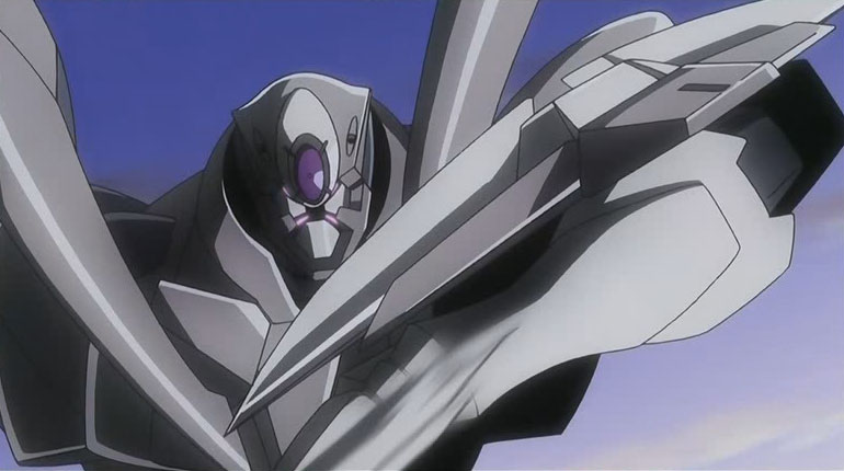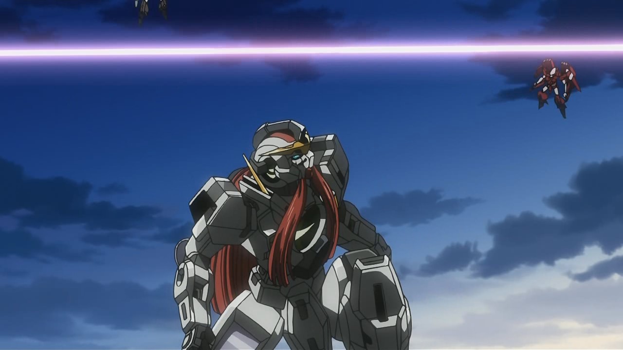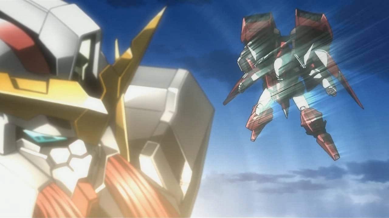 Back at the Gundam battle, Tieria and Setsuna are working together using various formations to attack the Gundam Thrones. When Johann tries to get Nena to dock her Drei to his Eins so that he can use his main cannon, Tieria refuses to give them the chance to do so and attacks them both. They respond by pointing their guns at the Virtue and preparing to fire, however Tieria then activates the Gundam Nadleeh’s Trial System. After the Virtue loses all of its excess parts, thereby completing the transformation into the Nadleeh, it begins to emit a constant wave from its core that causes the Throne Eins and Drei’s systems to shut down. As a result, both the Gundam Thrones go crashing down, and Tieria explains that the Nadleeh’s true ability is to gain control of all mobile suits that are linked with Veda via this Trial System. Declaring that the Trinity siblings are unfit to be Gundam Meisters, Tieria says that they deserve to die 10000 times and dives towards them with beam saber in hand. Unfortunately, the Trial System mysteriously stops working just moments before the Nadleeh reaches the ground, and that’s enough time for the Throne Eins to get out of the way. Seeing that the system was forcibly turned off, Tieria remembers how he had been denied access to Veda earlier, and this confirms his suspicion that something was done to Veda.