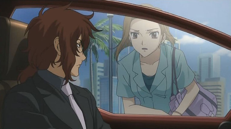 The Throne Eins and Throne Drei then circle around so that they can strike back at the Nadleeh, however they suddenly come under fire from a third source: the Dynames. Instead of standing and fighting, Johann orders a retreat because he knows that their plan will be hindered if the Gundams destroy each other. Before he leaves though, Johann tells Lockon that there’s someone else that Lockon should be fighting first. Addressing Lockon by his real name Neil Dylandy – which he supposedly found out through Veda – Johann reveals that Soran Ibrahim, a member of the Kurdish anti-government guerrilla organization KPSA that killed Lockon’s parents and younger sister, is here. Soran Ibrahim’s codename is Setsuna F Seiei. Meanwhile, someone who claims to be involved with Celestial Being contacts leaders from around the world, and the Union president thinks that there might be an internal division within the organization. In Spain, Saji listens to a news report about the American company that was attacked by Gundams while he fills a vase with water, puts flowers inside, and brings it to Louise.