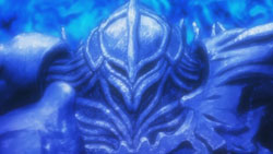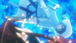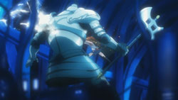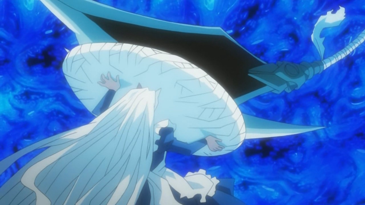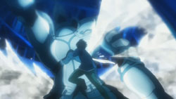 Dantalion is prepared for this and activates the Tomogara’s giant wings, causing Wilhelmina to realize that it’s going to try to fly out of the fuuzetsu. Inside of it, Shana and Yuuji reach the room where the silver armor is, and Yuuji senses the Reiji Maigo inside of it. Shana manages to plunge her sword into its chest, but when it counterattacks with a blast of power, Yuuji has to save her by throwing a blast of his own. Recalling about what Alastor had said earlier, he directs Shana to attack the mechanism behind the silver armor that connects the Reiji Maigo to the giant Tomogara. Before she can do so though, the silver armor knocks her off her feet, and this time Yuuji doesn’t have the power to help. The silver armor is then about to shoot Yuuji, but under Hecate’s control, it misses. Shana uses this opportunity to strike, and as she watches Shana rise into the air with her wings out, Hecate is reminded of the birds she saw some time ago. This leads to the silver armor stretching out to Shana instead of attacking her, giving Shana the opening she needs to destroy the machinery behind it. Yuuji follows this up by stabbing the silver armor’s chest with the Blutsauger, and he successfully retrieves the Reiji Maigo.