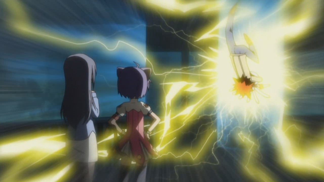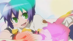 As for the five children, Kyouka has prepared a competitive game where she and Ouka search for them. The children can be identified with red armbands like the ones Ouka and Kyouka are wearing. Kyouka even has child detector equipment for the two of them, however even before the game begins, she has already decided that she’s the winner and he’s the loser. As her prize, she plans to have him live like a pet dog for a week, and this motivates Ouka not to lose. He quickly finds the first child in a supermarket – a meek girl named Yuuka – but before she can take his hand, Kyouka runs between them and slaps Yuuka’s hand. Based on her own rules, Kyouka now considers Yuuka to be her find because she touched Yuuka first, and the subsequent argument between her and Ouka causes Yuuka to start crying. The next child is located at the aquarium, and Ouka follows Kyouka there and discovers that she had data on what the children looked like all along. In any case, the child turns out to be a female jellyfish, and Ouka is forced to touch her and gets electrocuted in the process.