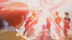Along the way to the next spot, Ouka tells Yuuka that he plans to end this mission quickly and break up this fake family. Yuuka, however, doesn’t want that to happen because she had been looking forward to this. They then come across a crowd gathered around a lion facing a robot-like figure, both of whom are wearing red armbands. The robot-like figure is actually a biological weapon created from a piece of Enka, and he explains that he likes fun things, and so he’d like breaking someone strong like the lion. He identifies himself as originally being called Black Thirteen, but he’s been renamed Hyouka for this family. After the lion identifies himself as being called Teika, the two look like they are ready to fight, but Ouka steps in, trips Hyouka, and points a gun at the biological weapon’s head. Ouka tries to convince his new son not to hurt his siblings and reveals that he knows about Black Thirteen, however he feels that Hyouka isn’t a biological weapon any more and can live as a member of their family. After saying this though, Ouka admits that it’s a lie because he doesn’t understand what a family is. Nevertheless, he vows to give it his all as a father and calls Hyouka his son.