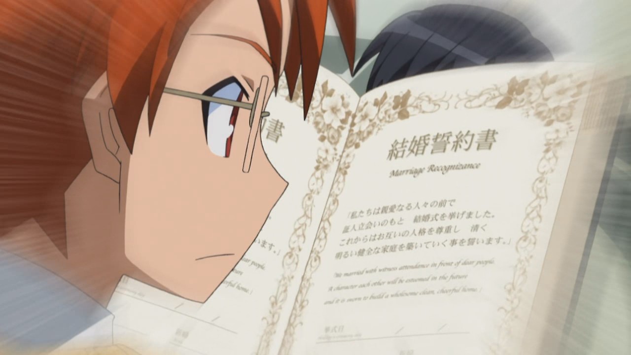 Before Ouka really understands what’s happening, his boss brings out a priest who reads them their vows. Kyouka is more than willing to go through with this, but Ouka has to be forced by the others in the bureau to sign the paperwork. He also finds out afterwards that he’s expected to be the father to five children. The two are then given a new home, and Kyouka is thrilled to see all the stuff that commoners live with. She tries to cook something for Ouka – using a chainsaw as a knife – but instead of eating the monstrosity of a dish that she creates, he asks her if she’s okay with getting married to a complete stranger. Kyouka explains her position by citing the Enka legend. Enka is a monster from a thousand years ago that tried to destroy everything on Earth. It was defeated by humans, but right before dying, it declared that in a thousand years, its child would appear and spread fear and despair. Kyouka claims that she’s the child, but she also admits that there are others who were found through DNA analysis. The plan that was developed was the mission given to Ouka – the harmonious family operation – where they put all of the children together in one family in hopes of identifying who the threat is. There is also the possibility that the child will feel that he or she doesn’t want to kill the rest of the family and destroy the world.