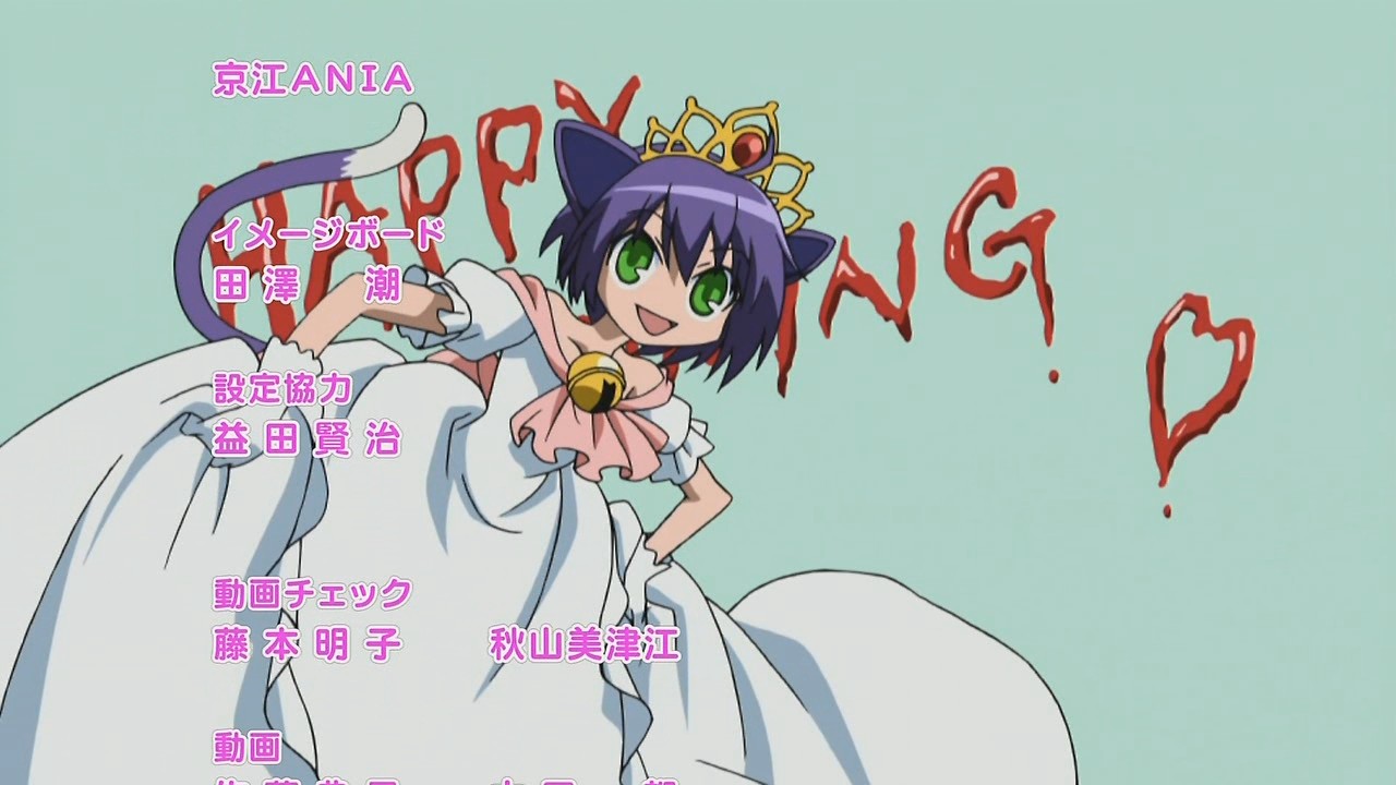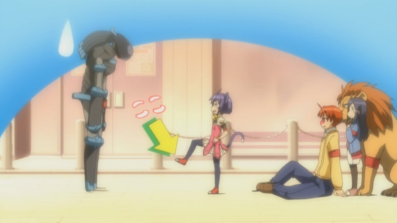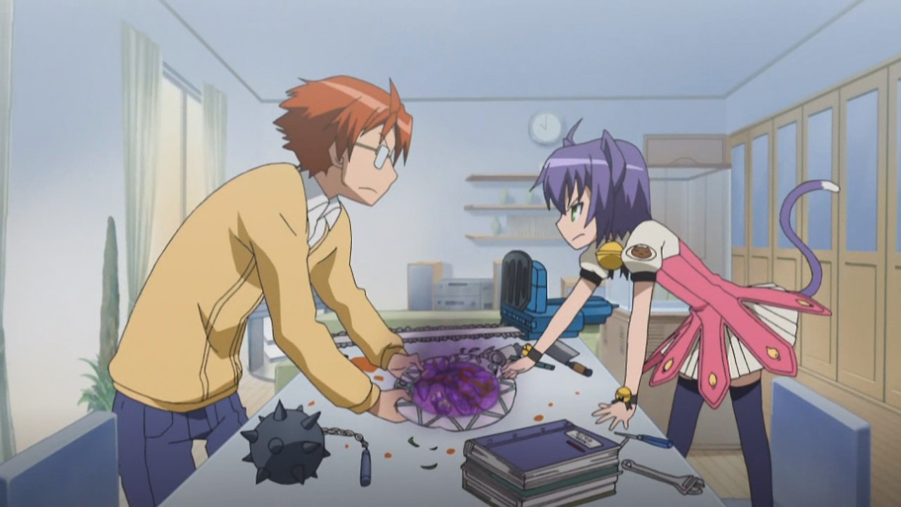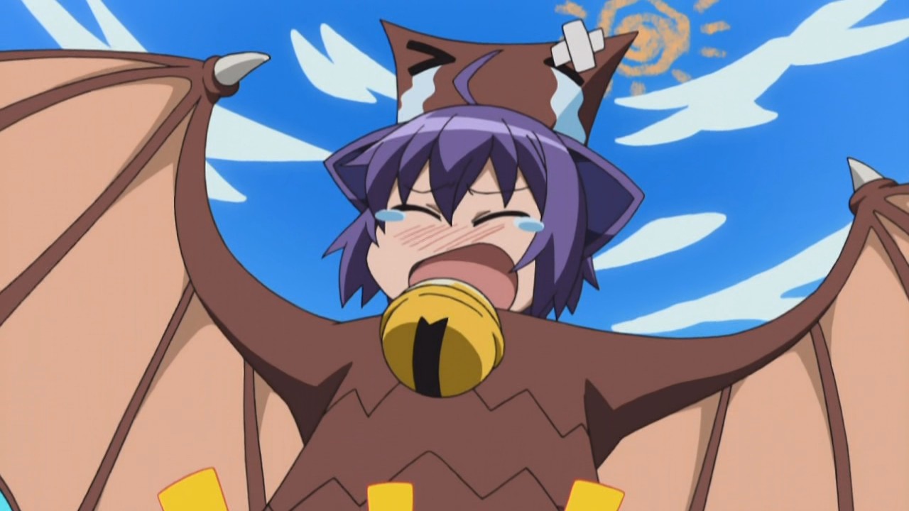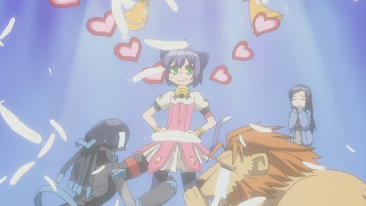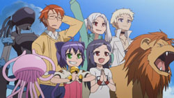 Well, I knew the setup for this series was pretty out there (putting together a catgirl, a loli, a lion, a jellyfish, a biological weapon, etc), but I wasn’t quite prepared for just how crazy/wacky/insane/all of the above it was. Kyouka alone is too much to handle because of her tendency to speak a mile a minute (she’s voiced by Fujimura Ayumi) and do Suzumiya Haruhi-esque things (aka. take control of everything and think nothing of it), but not quite to the point where you hate her. In fact, I feel sorry for Ouka having to endure someone like her in the same way I feel sorry for Kyon having to live with some of Haruhi’s antics. But when you throw a character like her into a family like this (balanced with a fairly normal and responsible husband), it brews a potentially perfect storm of craziness and fun.