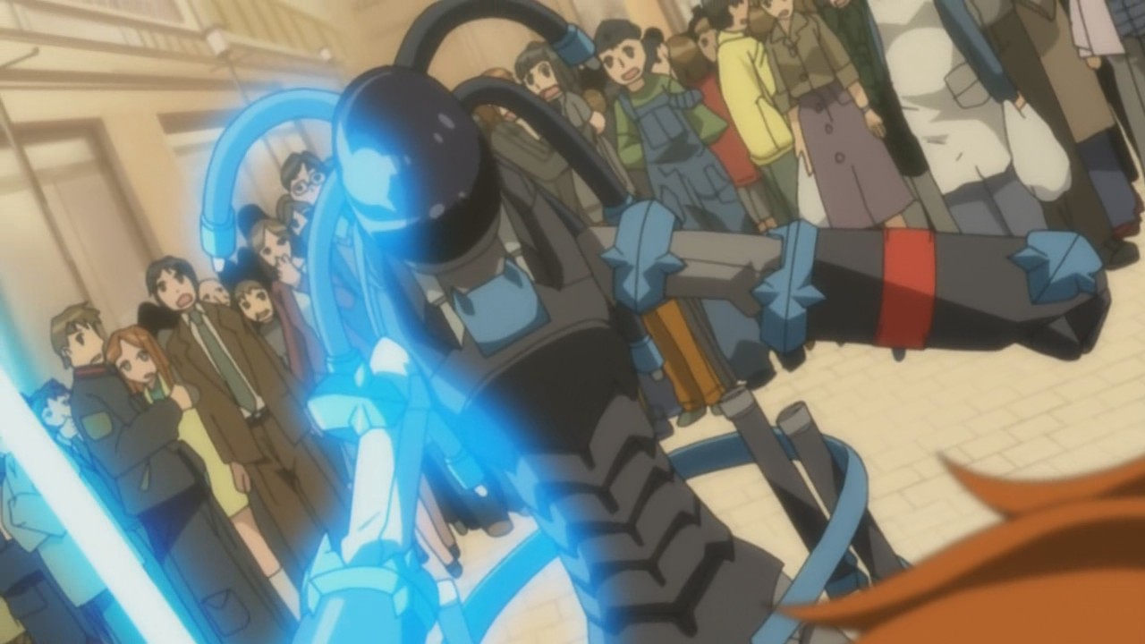 The speech wasn’t as fast as I thought. I was expecting constant the speed of the previews in Excel Saga. I wonder if the dad will ever fire the gun. I’m sure the robot wouldn’t be that hurt from it…