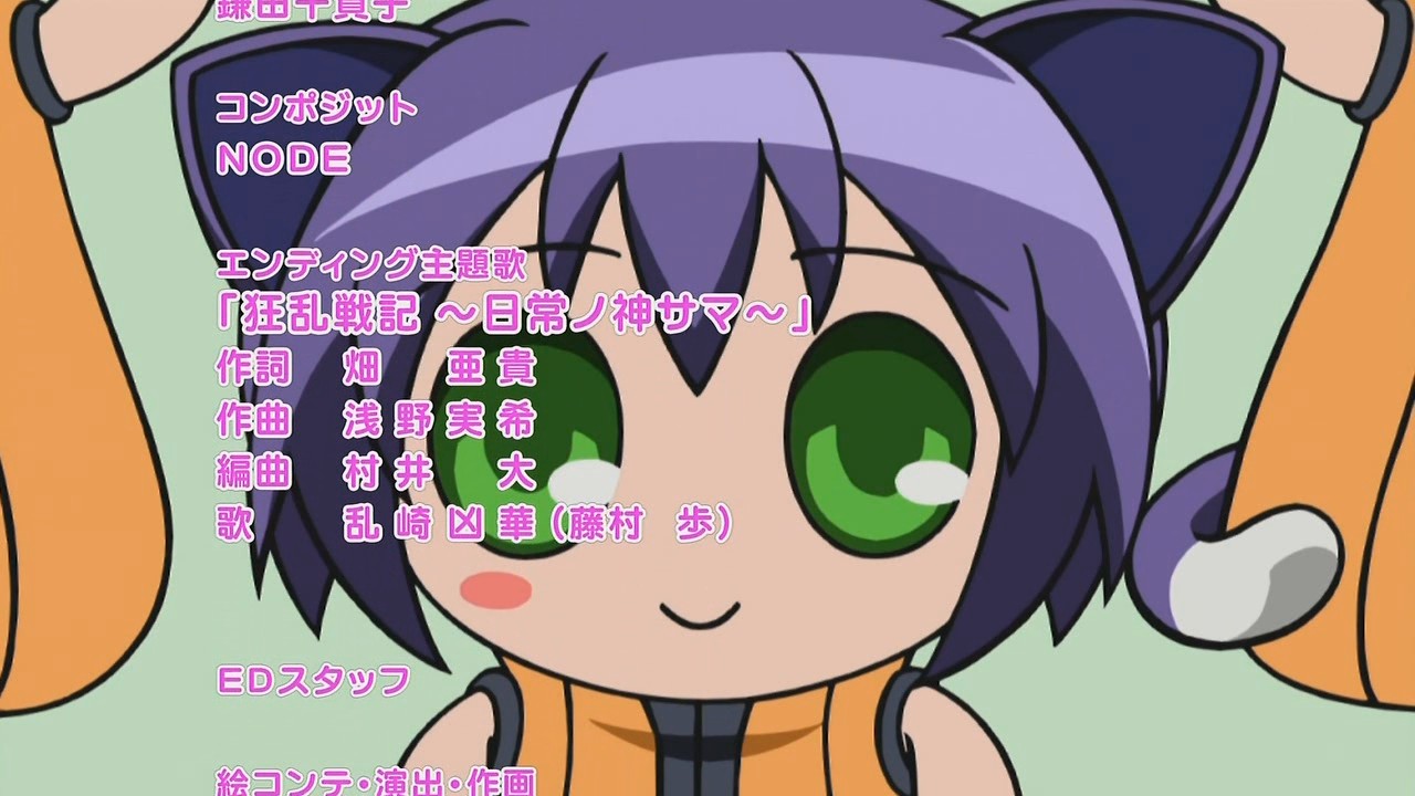 ED: 「狂乱戦記 ~日常ノ神サマ~」 (Kyouran Senki ~Nichijou no Kami-sama~) by 藤村歩 (Fujimura Ayumi)