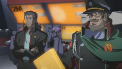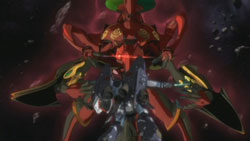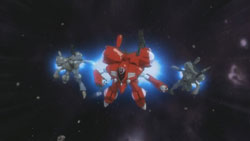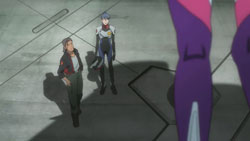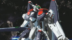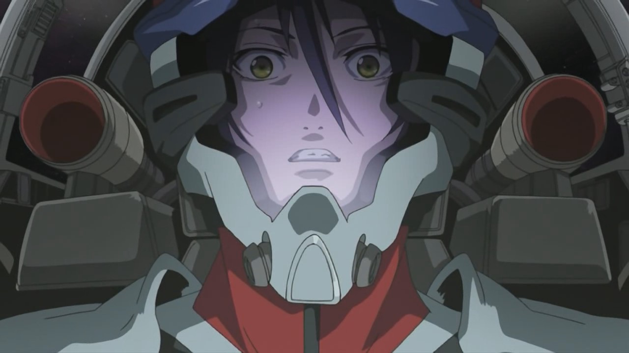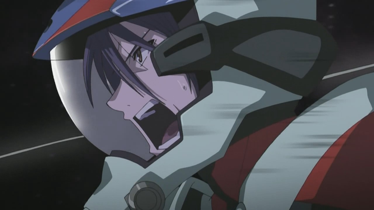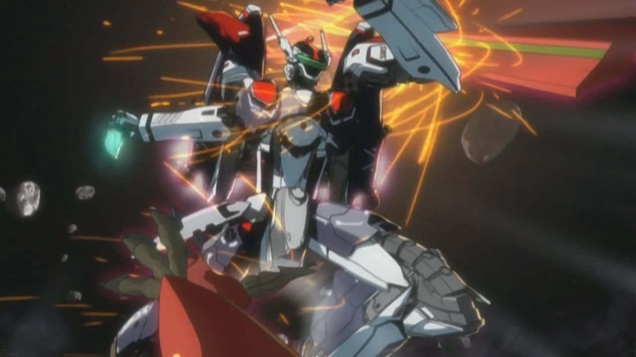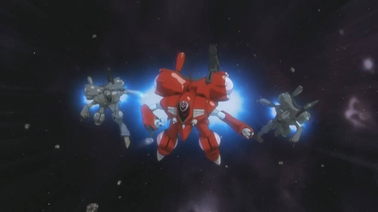 The Vajra grabs the VF-25 before it can get close and tosses the craft away. Alto is ready to charge again, but the red Queadluun pilot stops him and attacks the Vajra instead. The Vajra survives both the Queadlunn’s missile barrage and a point-blank shot to the weapon above its head, and shortly after it counterattacks, Alto reenters the battle. While the Vajra and the Queadluun had been fighting, Alto had looked around and spotted an old Zentradi weapon floating in space. He now uses that weapon on the same spot that the Queadluun had just hit, and this succeeds in blowing up the Vajra. The group then returns to base, and in light of the heavy damage to the VF-25, Ozma lectures Alto on how they’re given expensive equipment to survive, not to fight. Despite Alto’s recklessness though, the giant female Zentradi pilot of the Queadluun – Kuran Kuran – compliments him on his senses, and that’s enough for Ozma to pass Alto on the final test.