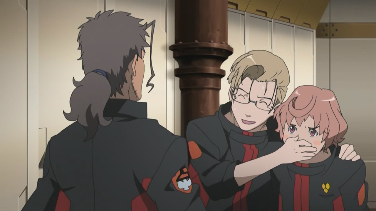 Sheryl and Alto, on the other hand, aren’t clicking quite as quickly – the former was knocked off stage by the latter’s ‘amateur’ flight maneuvers, he has her precious earring (she thinks), and he’s argued with her for most of their first two encounters… but the third looks to be starting off on a less aggressive footing. Yet, even with their arguments, they both seem to have had a good time (especially with the shelter situation), and Sheryl sure didn’t seem put out by the fact that she’d forgotten to ask him about her earring as expressed by her slight smile in the bath during Episode 3. She definitely got something good out of the argument… or maybe just out of teasing Alto. And given her access to data (she got his name and information pretty quickly), she may even know of his Kabuki background, which could prove quite interesting if she teases him about it at some point.