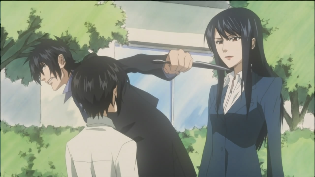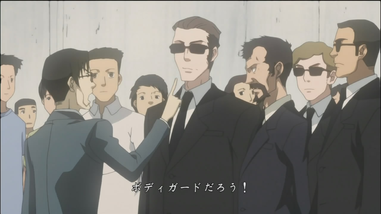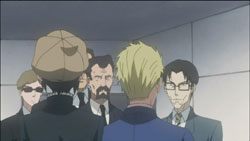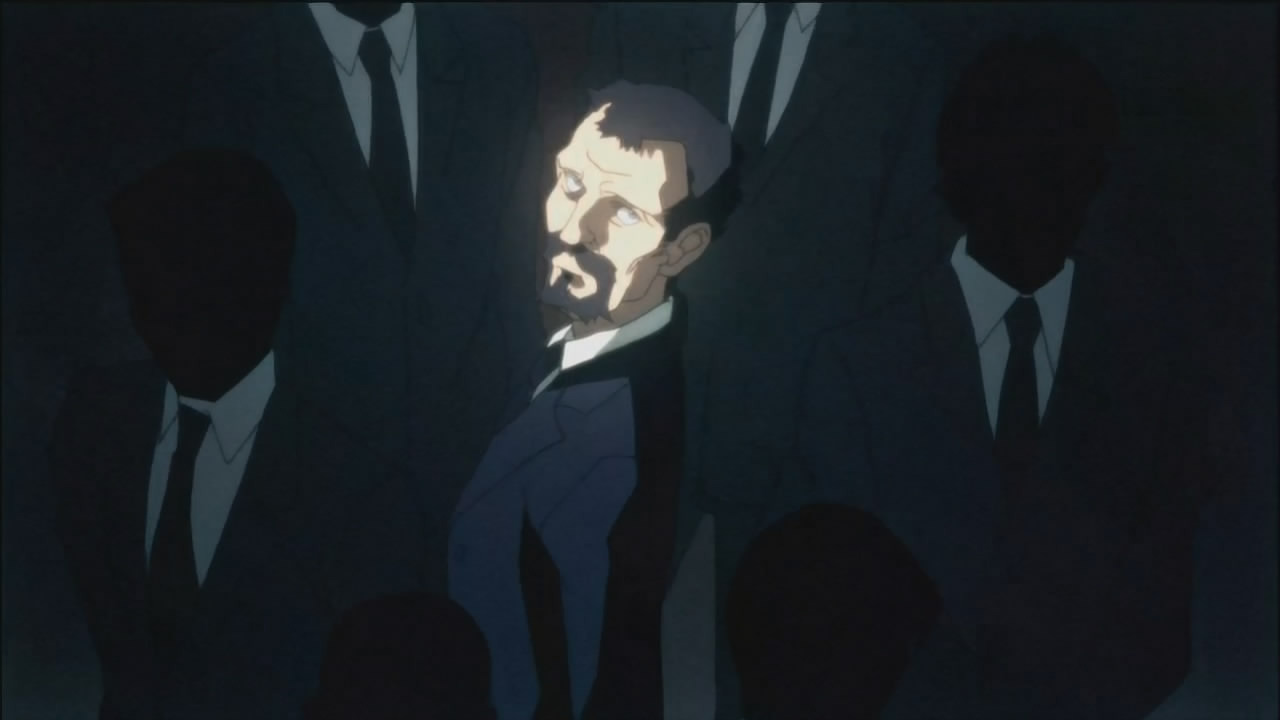 After Sourou introduces himself as the assistant director of public relations, he tells everyone about a corporate meeting that’s coming up. At this meeting, Yae wants them to assassinate the CEO of a conglomerate, Eugene Frosty, whose company’s front is chemical energy development, but actually has military intervention in third world countries where they also perform human experiments. Since Frosty is always a target for assassination, Yae informs the others that he’s always surrounded by a group of elite Kairoushuu bodyguards. If Kumohira and the others are able to successfully assassinate Frosty though, Yae is willing to offer them the Togakushi kinjutsusho, the Idzuna Shingan, as compensation. She claims that they don’t want to face the other villages later on and get caught up in all the Shinrabanshou business, so holding onto the kinjutsusho is only a demerit. Also, even without it, she can already use the Idzuna Shingan. After a bit of back and forth threatening on exposing their secrets, Yae uses her kinjutsu on Miharu and finds out some of his inner thoughts, including how the death of his mother made him apathetic. When Yae suggests that he use the Shinrabanshou to retrieve some lost memories, Miharu is visually troubled, so Raimei and Kouichi decide to intervene. Unbeknowst to them though, the Shinrabanshou has already overpowered Yae’s kinjutsu leaving her defenseless, but Kumohira steps in to stop their attacks. He also agrees to undertake the deal on his own accord.