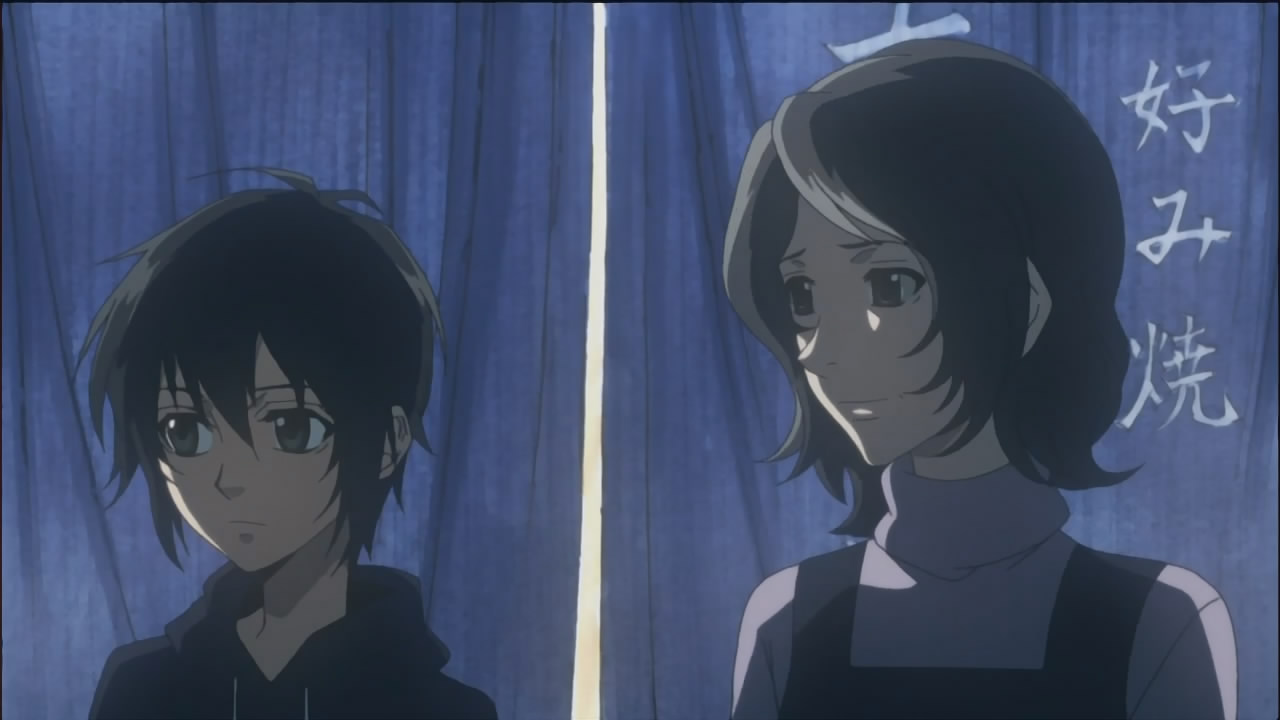 In the preview, it looks like Kumohira was unsuccessful in assassinating Frosty on his own and the attempt has shifted to the parking lot. It also looks like Miharu will finally display some of his powers as he stands up to what looks like Yoite’s Kira in order to protect Yae. Given how depressed Kumohira has been lately for being unable to carry through with his words, I’m kind of expecting him to do something fairly significant soon. As for Kouichi, he’s carrying a gun in the preview, so maybe he’s learned something from Yukimi. In any case, while I’ve enjoyed all the thorough plot and character development so far, it’s nice to see some action picking up again.