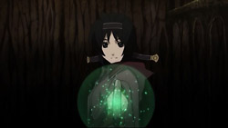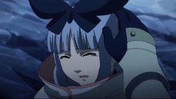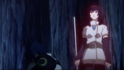 Jil and company manage to save Fatina and Utu, but they can’t do any significant damage to Druaga. Just as Jil is about to give up, Ahmey tells him to face Druaga headfirst while she launches an attack on the monster’s head from behind. She gets all the way onto Druaga’s back and is about to activate her weapon when one of Druaga’s spikes suddenly pierces through her from behind. Everyone is shocked to see her fall lifelessly to the ground, and it takes Kelb and Ethana to grab Ahmey’s body and lead everyone away to safety. They get to a safe spot, but it’s too late for Ahmey – even Kaaya’s magic can’t save her. Knowing that she doesn’t have much time left, Ahmey thanks Coopa for helping them get this far, tells Melt to be nice to Coopa once in a while, advises that Kaaya not carry her burden by herself, and expresses her faith in Jil’s ability to come through in one way or another. She’s admits says that the journey was fun and that she was glad to have met everyone, and in her final breaths, she sees her dead lover and agrees to be his wife. After Ahmey passes away, Kelb, Ethana, Utu, and Fatina discuss what to do. Their situation is worse now because Druaga’s protective barrier has been restored, and they don’t have any Void Arrows to bring it down again – at least, they think that they don’t until Kaaya reveals that the stone slab she got from the old tower will work. Even with this though, they still don’t think they can defeat Druaga.