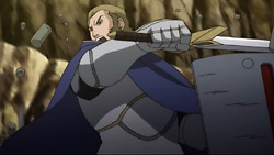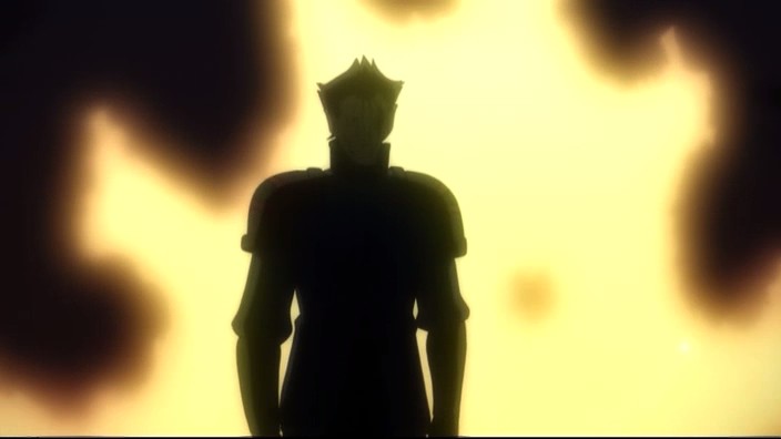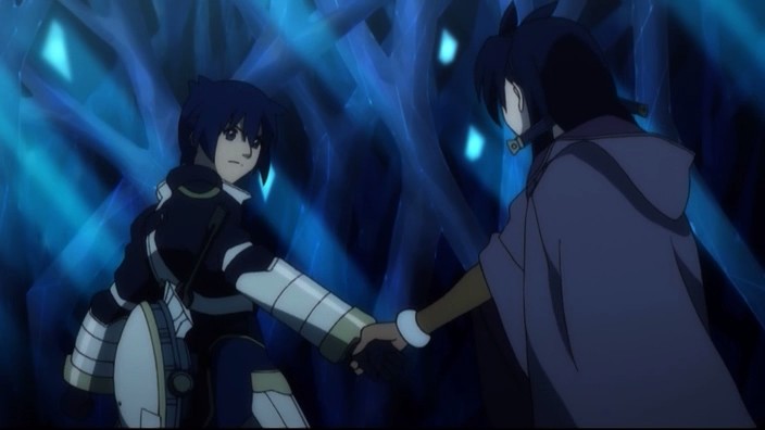 Meanwhile, Pazuz begins his attack on Druaga by opening up the four caskets his slaves had dragged up here for him. Before they can finish opening though, Neeba reappears and kills Pazuz with arrows to the chest and the forehead, and Druaga proceeds to destroy the caskets. Back at the safe spot, Jil blames himself for Ahmey’s death and realizes that he’s only a foolish hero wannabe. Ki appears beside him and directs him to look at his friends who are all hurt and all feeling that they might die. She makes Jil think again about what he wants to do, and after remembering how Ahmey had told him not to give up, Jil realizes that he wants to be the shield that protects everyone. This inspires him to rally everyone to fight once more, and he vows not to let anyone die this time.