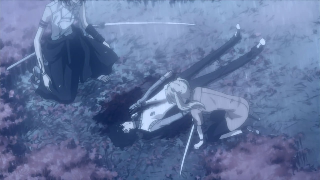 Despite my qualms with Raikou’s way of thinking, I like how they revealed the Shimizu past in detail this week, which allowed us to understand his reasons for doing what he did (…whether I agree with them or not). Also, the fight scenes this time around were longer and more action-packed than last time, and as odd as it may sound, I actually liked how they overexaggerated the length of their katanas (i.e. Kurogamon and Shirogamon). Speaking of the Shirogamon, i.e. Raikou’s white katana, he ended up leaving it on that field for Gau’s sake. Seeing as Raikou has decided to go back to the Kairoushuu for now, it’ll be interesting to see what happens when he meets Raimei again in the future.