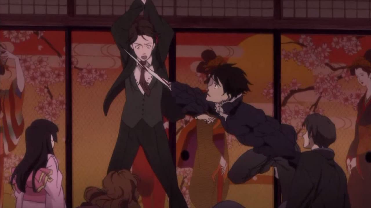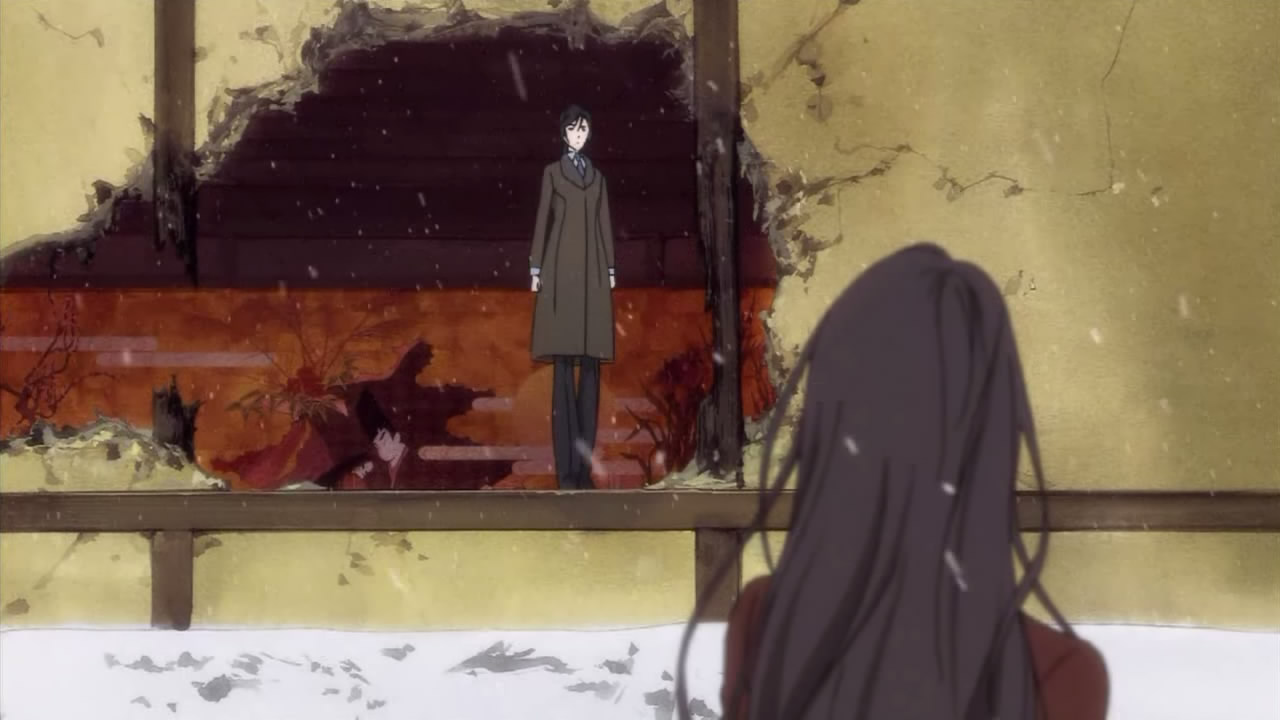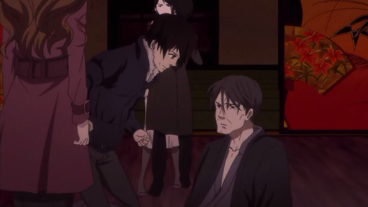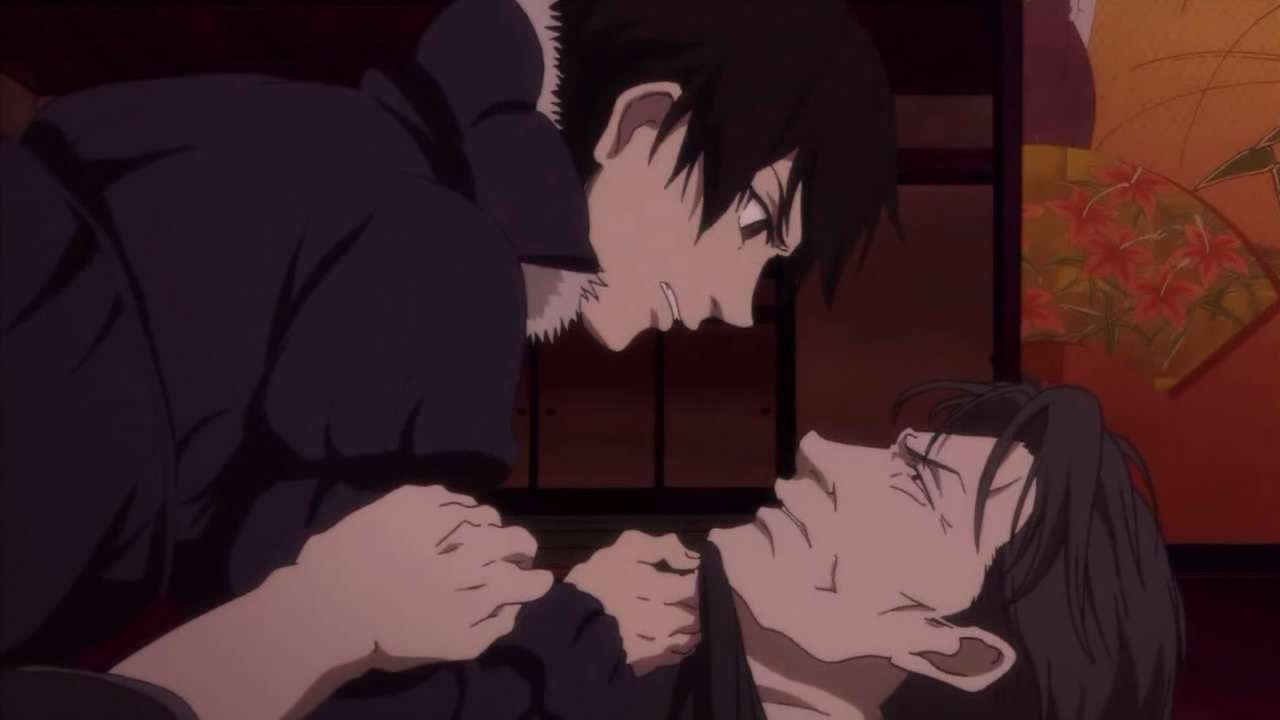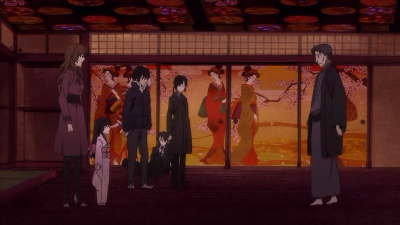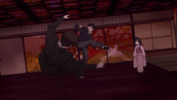 Murasaki’s words get through to Renjou a bit, so he calmly reiterates to her the customs of the Kuhouin family, while Murasaki insists that her mother didn’t give birth to her simply because of customs. After she expresses the desire to pick her own lover, Renjou approaches her, but Shinkurou tackles him before he can lay a hand on her and demands that he acknowledge Murasaki’s existence. Yayoi stops Kazuko, who pleads for help, but her words fall on deaf ears from the Inner Sanctuary maids. Shinkurou tells Renjou that he’ll leave Murasaki here, but in exchange, he has to grant her wish of leaving the Inner Sanctuary. When Renjou claims that it can’t be done, Shinkurou questions as to why not since he’s the head of the Kuhouins. Without giving him a chance to properly respond, he simply tells him to fight the traditions set for Murasaki.