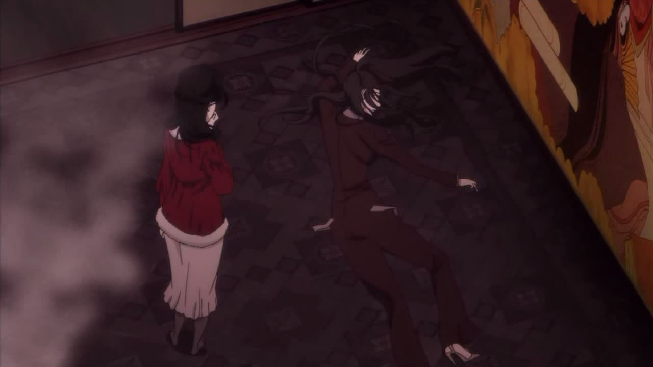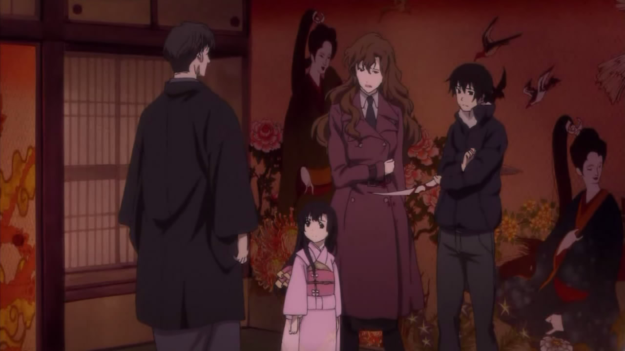 Renjou then shows up again along with Kazuko and argue with the others over letting Murasaki live a life outside of the Kuhouin household. Benika however, suggests asking Murasaki what she wants, to which she says she wants to leave the Inner Sanctuary. Hearing this, Renjou questions her as to what she plans to do in the outside world, so Murasaki tells him that she wants to fall in love with a person that she loves, much like her mother did with him. She later adds that she doesn’t want to leave the Kuhouin household, but simply the Inner Sanctuary, which surprises Shinkurou. Turning to Shinkurou, Murasaki says she won’t ask for the impossible and that by staying here she is fighting, whereas simply following him would be running away.